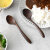 素材は硬くて丈夫なアジアウォールナット。濃い黒褐色の色合いは高級感があって、滑らかな手触りが魅力のカトラリーです。