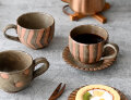 ザラッとした無釉部分と、光沢のある釉薬仕上げの2つの手触りが楽しく、柄違いで揃えても素敵なマグカップです。