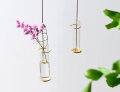 ゴールドのフレームにガラスシリンダーがセットされた、シンプルで上品な雰囲気のハンギングガラスベース。