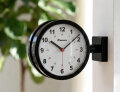 駅構内の時計を思わせる両面表示デザインの壁掛け時計。壁から突き出すフォルムが印象的で、時間確認のしやすさとインテリア性を両立。空間に心地よいアクセントを生みます。