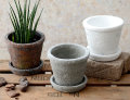 シンプルに仕上がった、ホワイトとグレー。一方、テラコッタカラーはコケ蒸したようなペイントが施され、長年使い込んだような雰囲気に仕上がっています。
