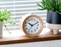 フレームは高級家具などに使われるブナの無垢材。木目が美しく、適度な重量感があり、目覚まし時計としてはもちろん、卓上用の時計としても扱いやすい時計です。