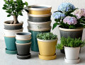 同色のソーサー付きで、統一感のあるコーディネートが叶い、価格もお手頃。3号〜5号対応の3サイズ展開で、棚やデスク上などにも置きやすい、使い勝手の良い植木鉢です。