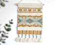 アイボリーを基調に、ベージュとライトブルーの幾何学模様がアクセント。ウールの風合いと立体感のあるデザインが暖かい雰囲気を演出してくれるタペストリー。