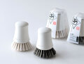 フライパンやザルなどの洗浄に使いやすい、シンプルで清潔感のあるキッチンブラシ。