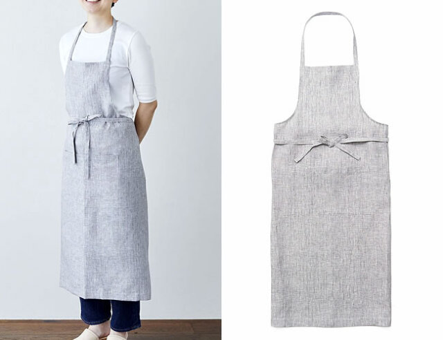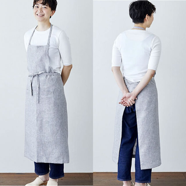 fog linen work フルエプロン グレーホワイトストライプ