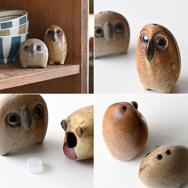 陶器のフクロウ親子