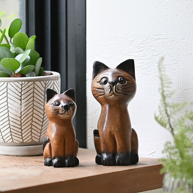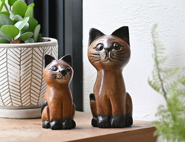 アカシア 木彫りネコ