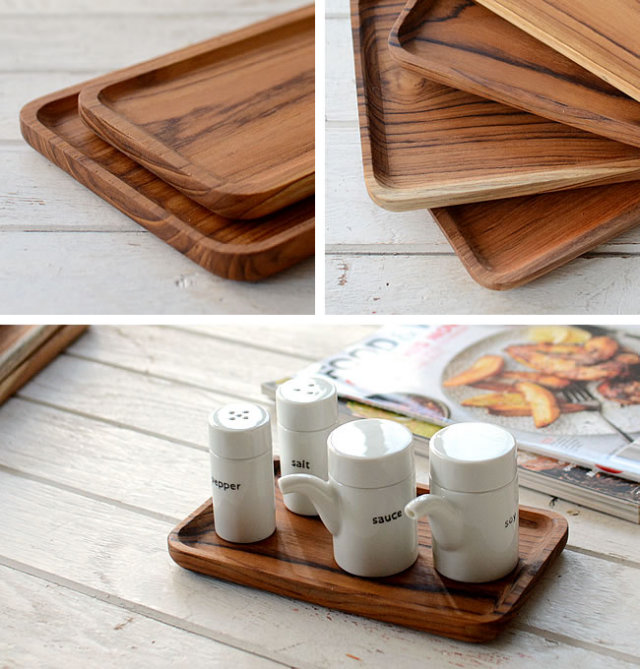 チーク フラットトレイ